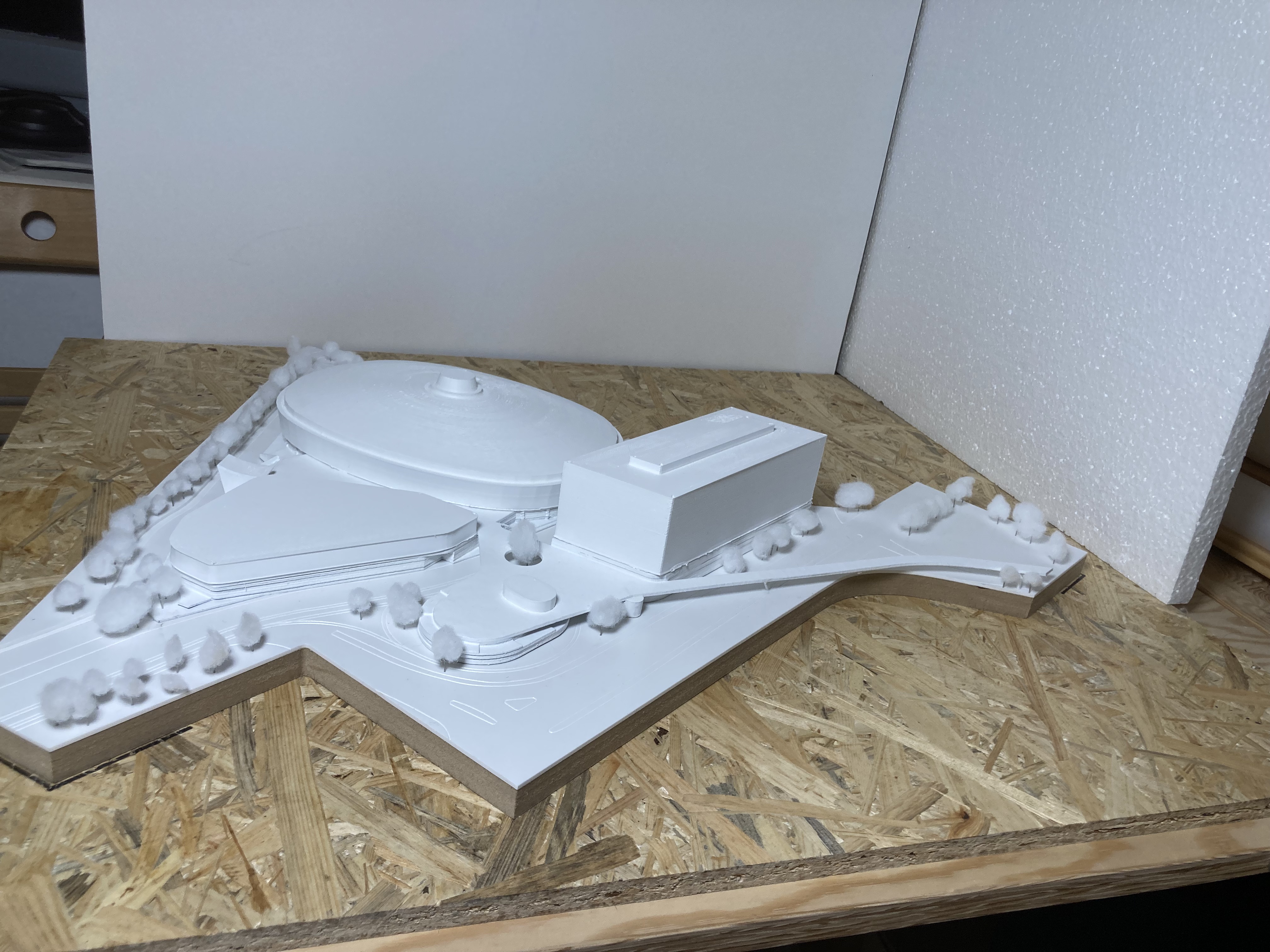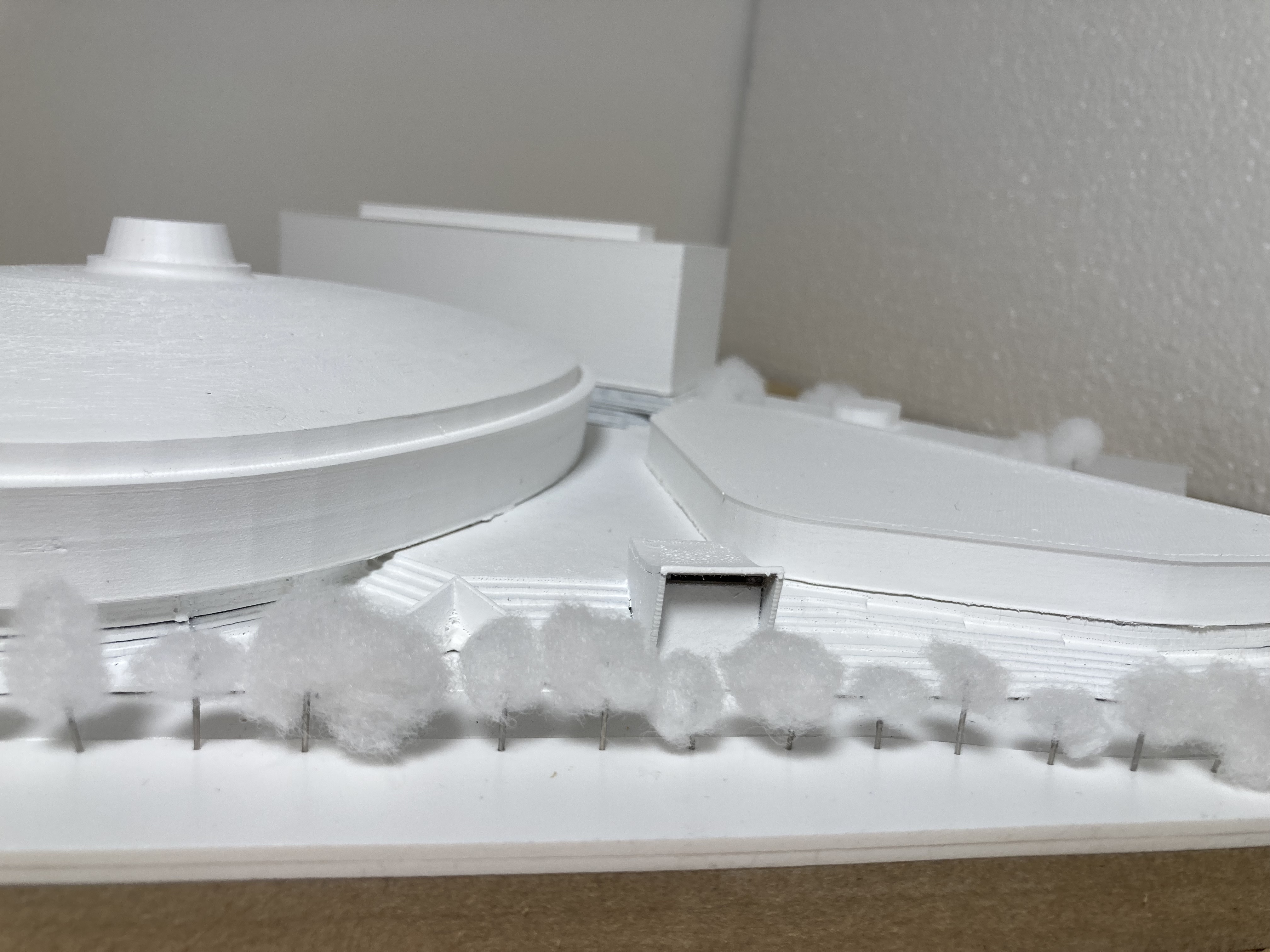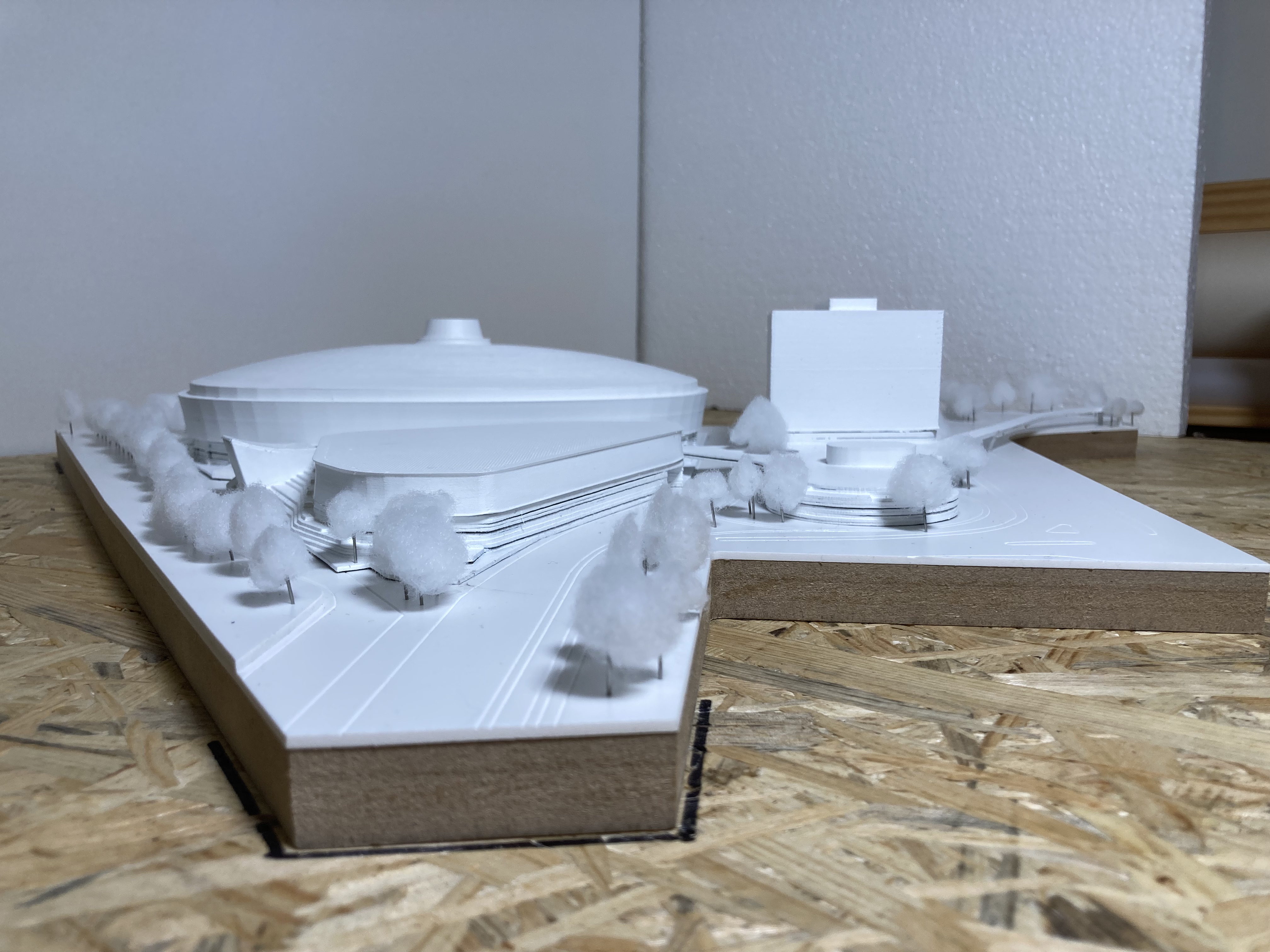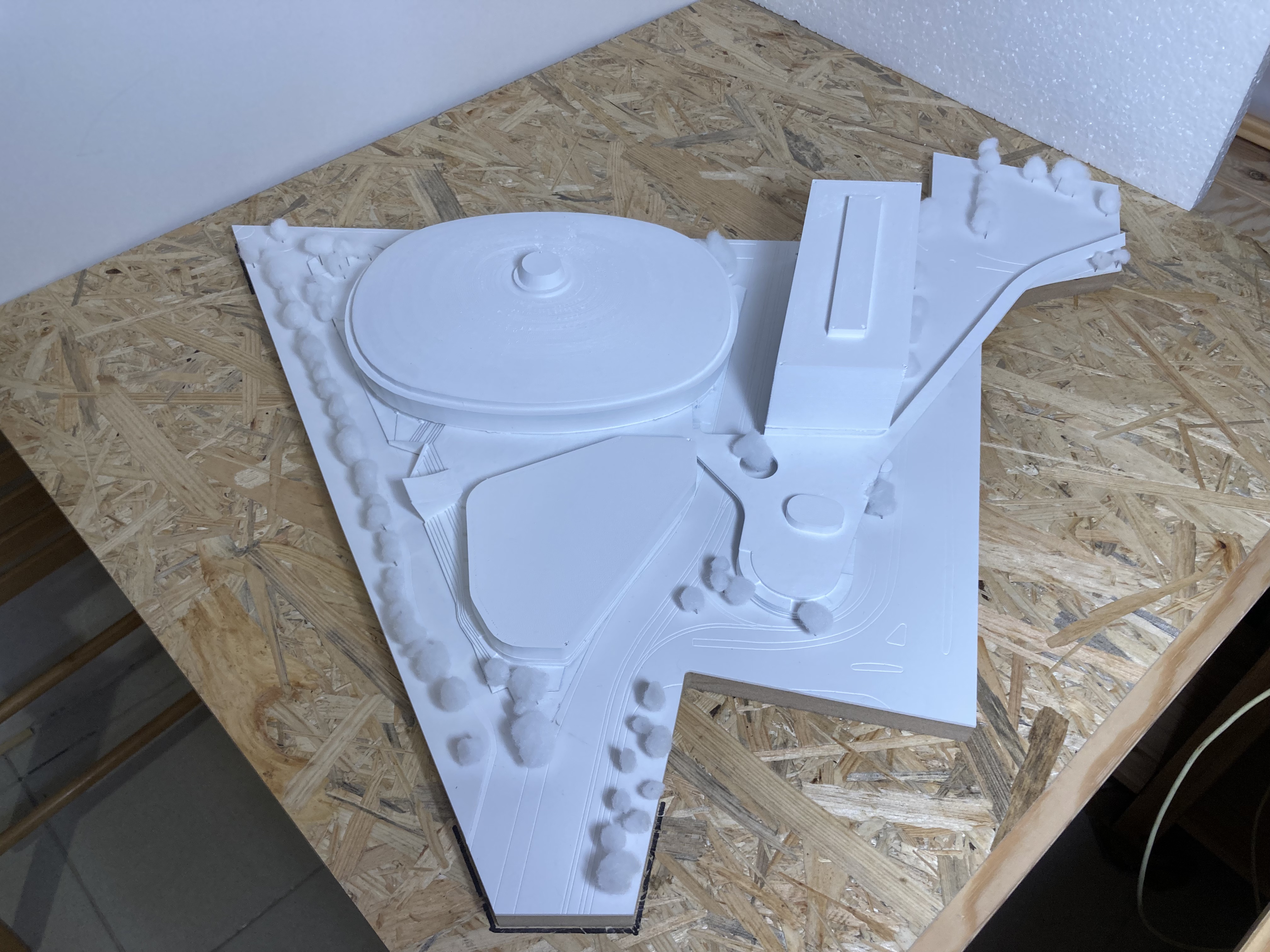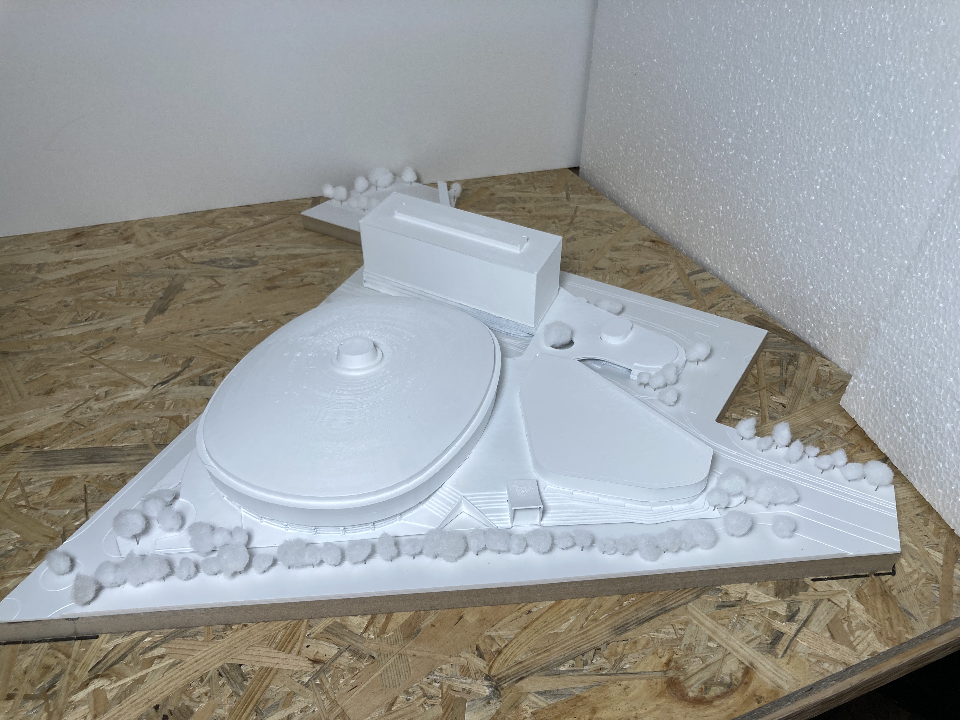 Le projet du bâtiment propose l'entier de la surface demandée de manière compacte. Cependant, la largeur du bâtiment crée des situations défavorables. C'est pourquoi le gabarit permet un objet de plus grande hauteur, afin de permettre un jeu de pleins et vides.