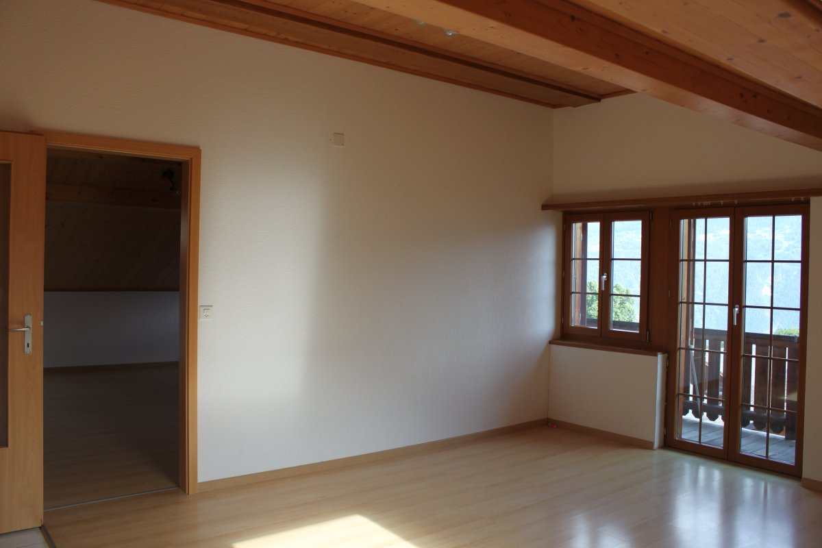 La pièce est spacieuse en surface au sol, mais en prenant en compte la pente du toit, il est impossible de se tenir debout sur 1/3 de la surface, ce qui réduit les possibilités d'aménagement. Les canapés et l'espace salon seront donc placés dans la sous-pente et la table là où la hauteur est généreuse.